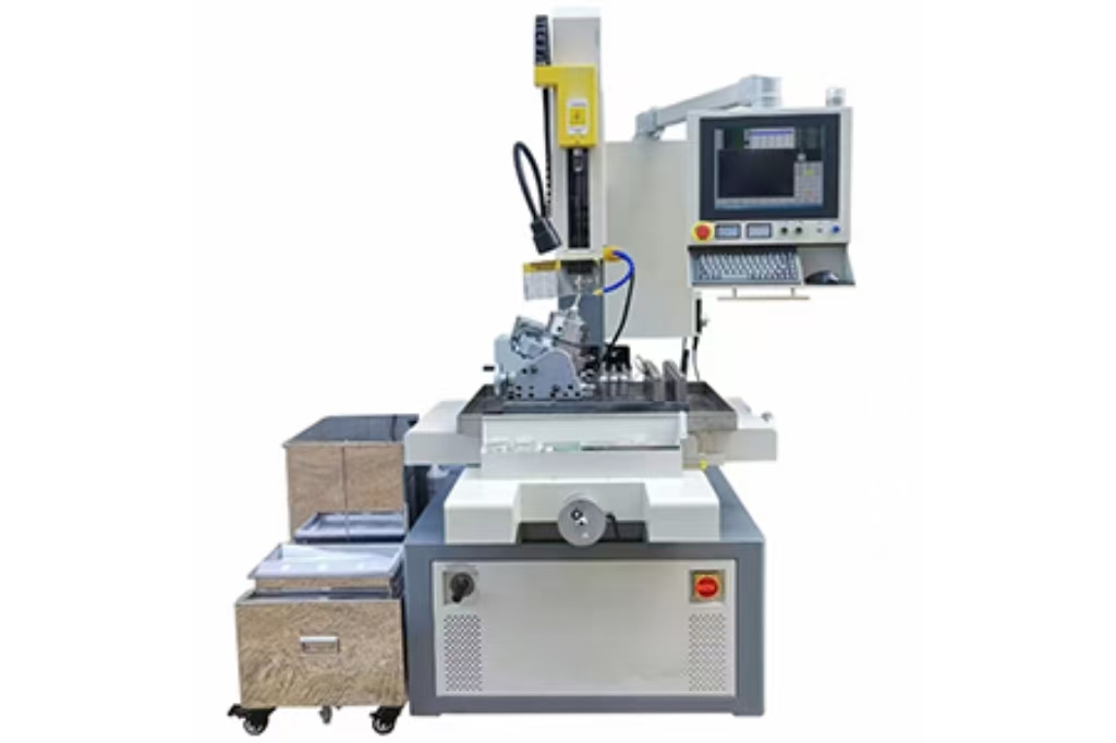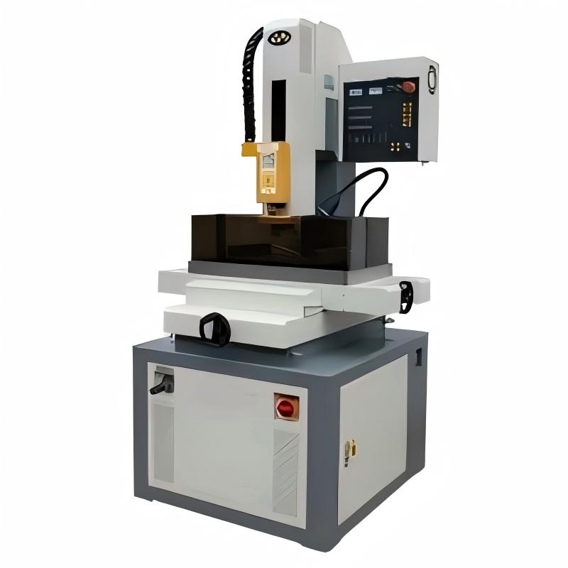 EDM drilling machine is a kind of special machine tool that utilizes the principle of electric spark discharge to realize material processing, mainly used for precision hole processing of high hardness and hard-to-cut materials (such as hardened steel, hard alloy, ceramics, etc.). Its working principle is to generate high temperature through the pulse discharge between electrode and workpiece to make the material locally melted or vaporized, so as to realize the contactless etching processing.